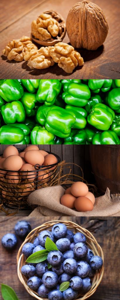 Boost your Vitamin C intake with these foods: spinach, blueberries, strawberries, kiwi, mango, potatoes, and bell peppers.